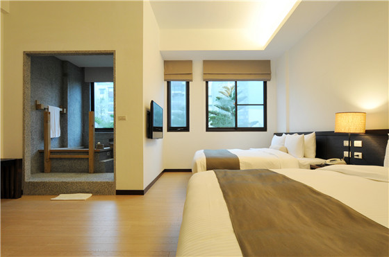以簡約如家的概念設計,捨去華麗,貼近樸實,提供旅宿者由內到外的住宿體驗。旅客可以在客房內享受無雜質灰白色半透明的弱酸硫酸鹽泉。